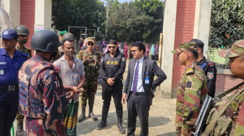 রাজবাড়ীর বিভিন্ন ভোটকেন্দ্র পরিদর্শনে র্যাব-১০, ড্রোনে নজরদারি