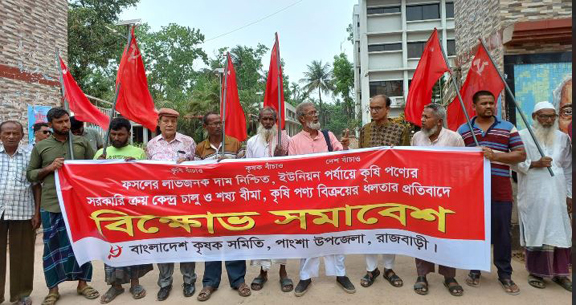 রাজবাড়ীর পাংশায় কৃষি পণ্য বিক্রয়ে ধলতা নেওয়া বন্ধ করা, ফসলের লাভজনক দাম নিশ্চিত, ইউনিয়ন পর্যায়ে সরকারি ক্রয়কেন্দ্র ও শষ্য বীমা চালুকরা সহ আট দফা দাবিতে বিক্ষোভ সমাবেশ ও স্মারকলিপি প্রদান করা হয়েছে।