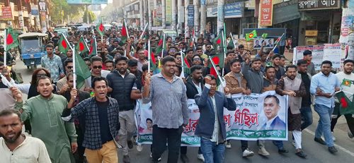 রাজবাড়ী‌তে ছাত্রদ‌লের বিজয়ের পতাকা মি‌ছিল